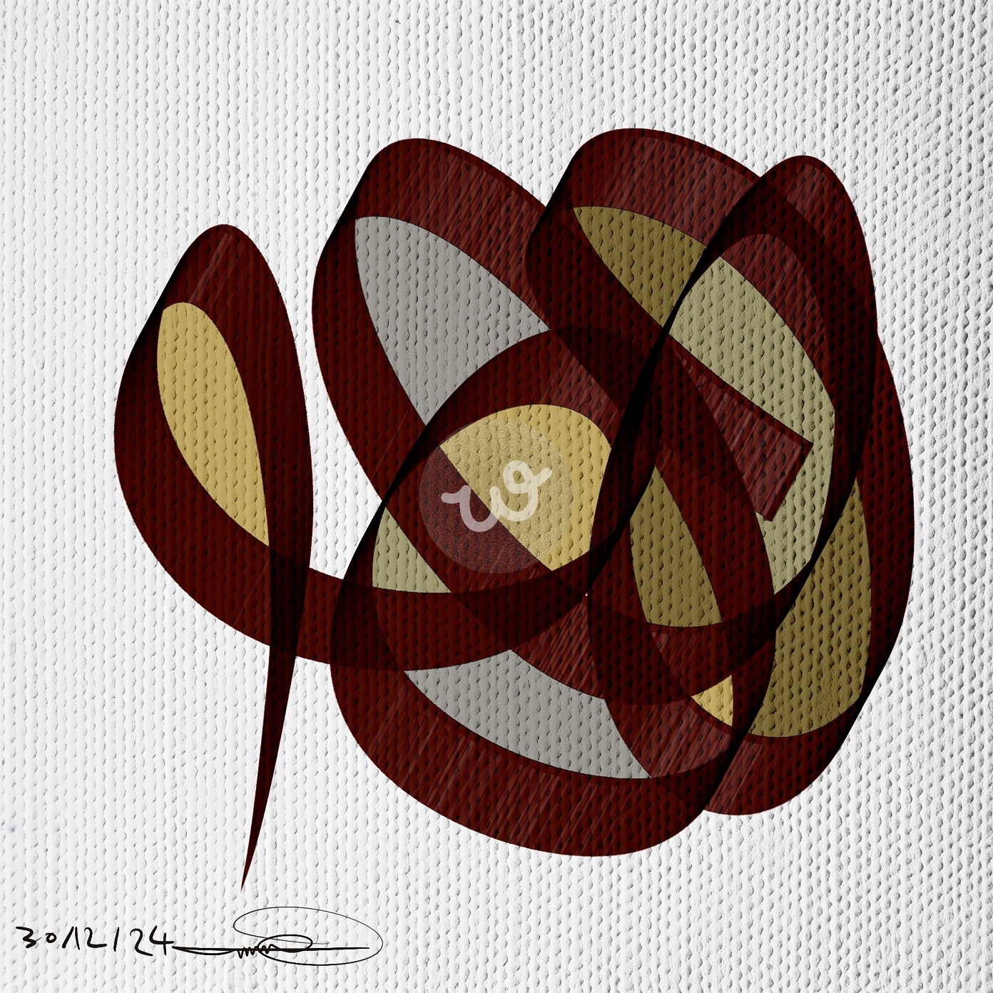 لوحة رسم يدوي للفظ الجلالة هو الله - خط حر وتداخلات لونية وخطية في إطار سلسلة لوحات بنفس المعنى والموضوع - تنفيذ رقمي - برنامج بروكرييت