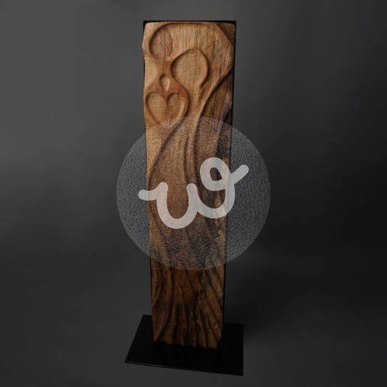 أمومة عمل تجريدي رمزي للأم بشكل خطوط على خامة الخشب الطبيعي وبملامس ظربات الازميل والتاثيرات الجمالية المتناسبة مع تدرج الوان الخشب