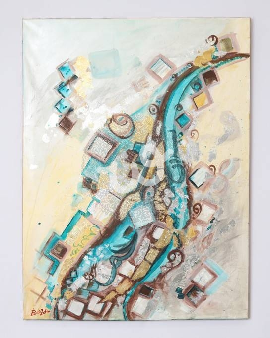 ألوان أكريلك وورق الذهب على لوحة قماش كانفس وحروفيات تجريدية