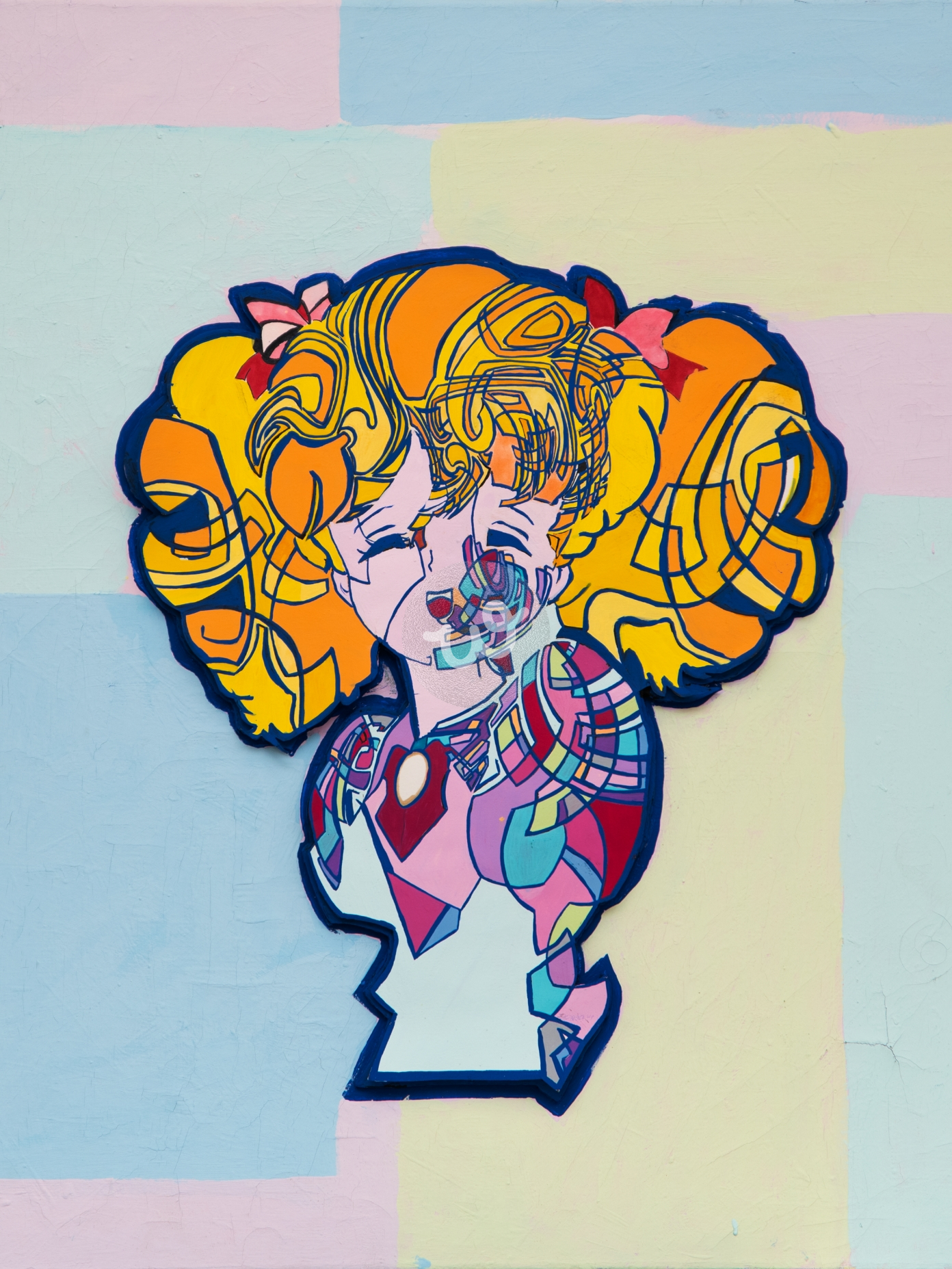 لوحة تجريدية وتكعيبية باسلوب خاص للفنانة الوان اكريليك