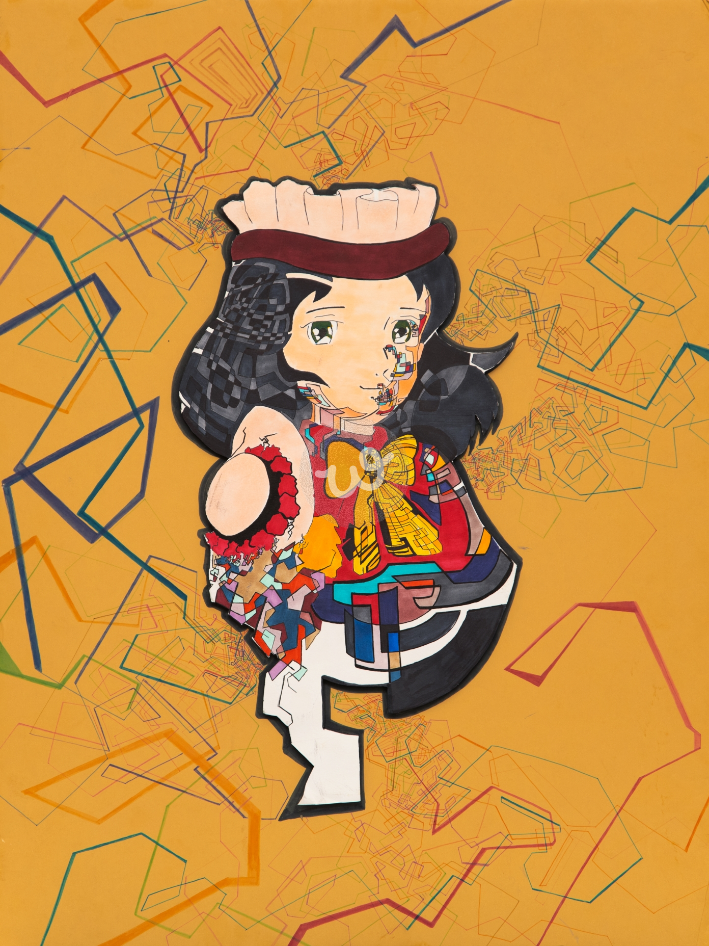 لوحة تجريدية تكعيبية باسلوب خاص للفنانة بالوان اكريليك