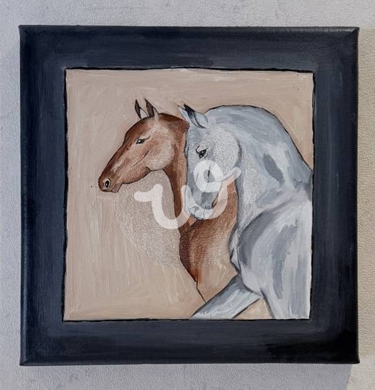 لوحة تعبر عن جمال تفاصيل الخيل بإسلوب تأثيري.