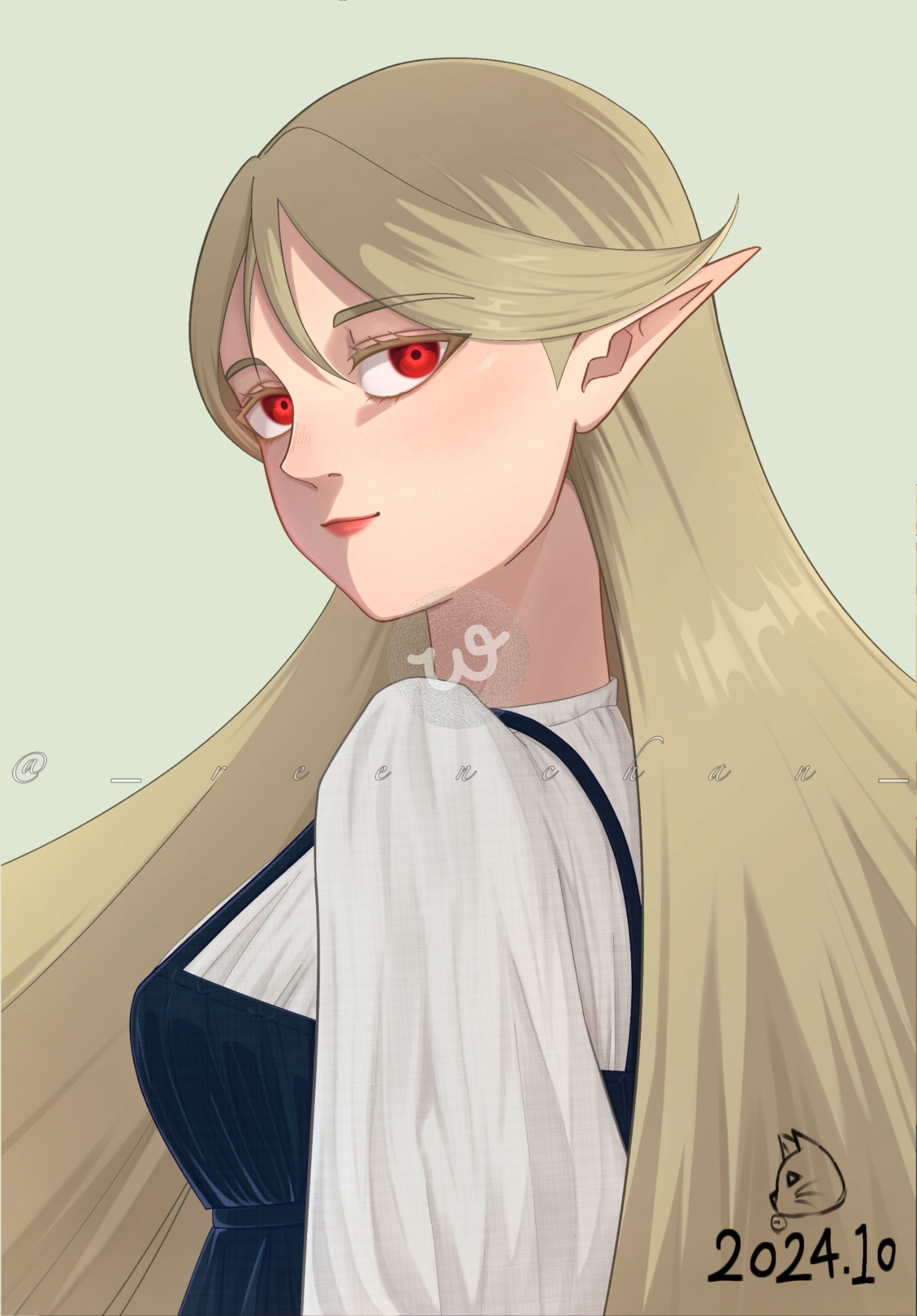 رسمة لاحد شخصياتي ( Plina ) تلتفت للخلف وتبتسم ابتسامه خفيفه