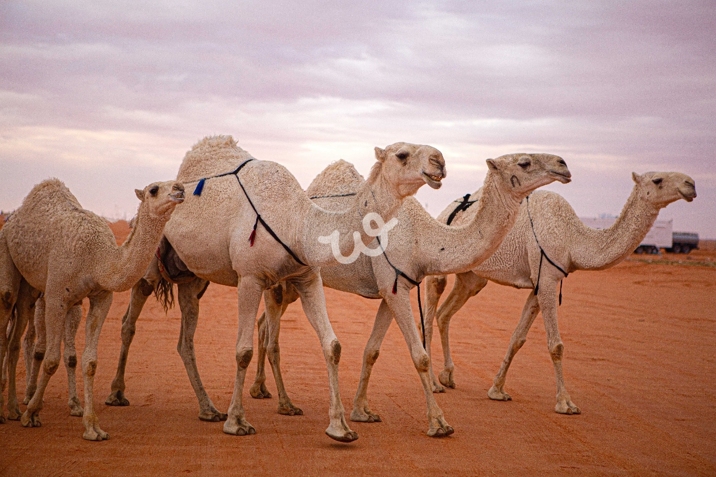 صوره لأربع من الإبل تسير في مهرجان الملك عبدالعزيز