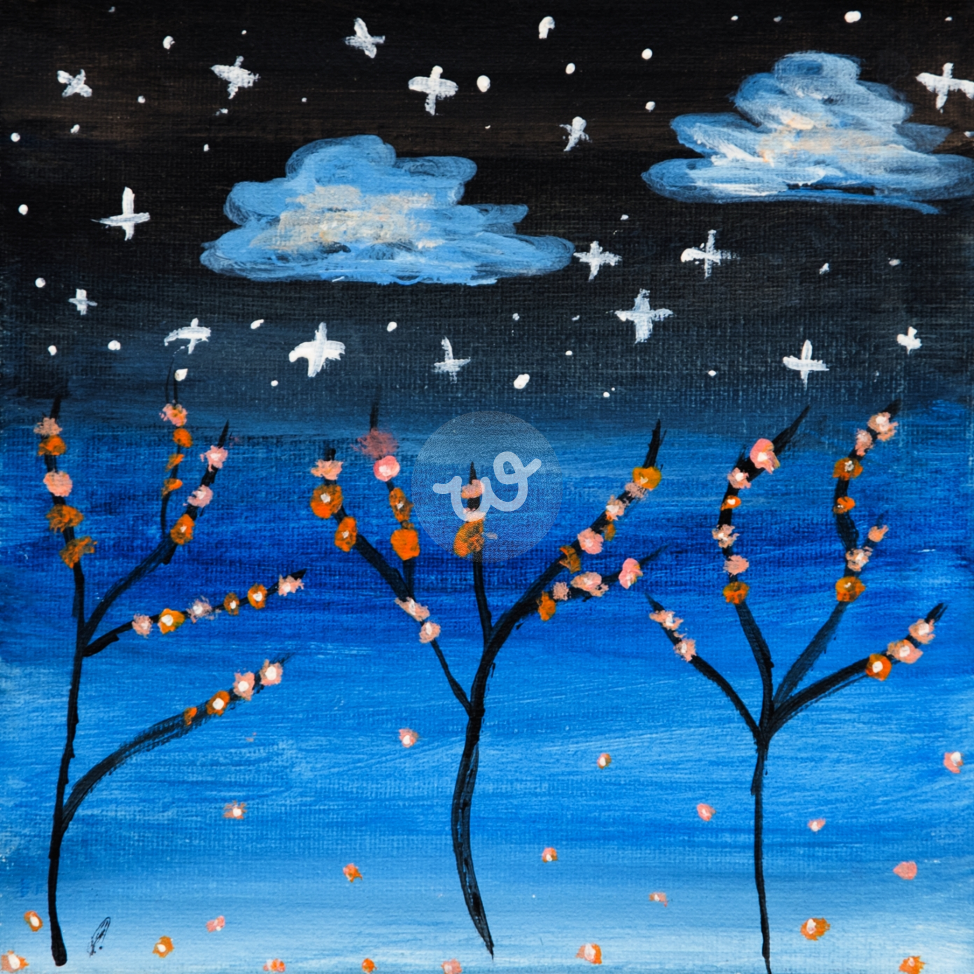 لوحه عن منظر الغابات الجميله في الليل وكيف يكون منظرها جميل و جذاب