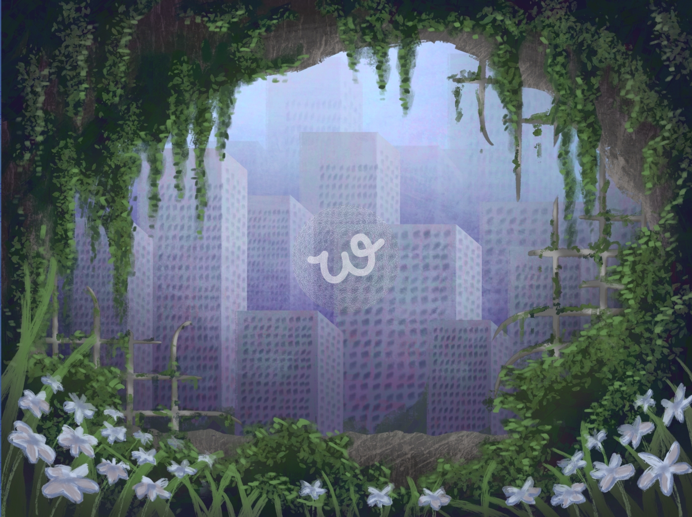 منظر طبيعي من داخل فجوه بداخل مبنى مهجور يطل على العديد من المباني