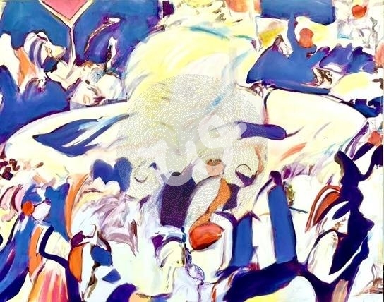 عمل فني تجريدي يعبر عن مشهد حيوي مليء بالحركة والألوان الزاهية. تستخدم اللوحة ألوانًا قوية مثل الأزرق والبرتقالي والأبيض، مما يعطيها طاقة وحيوية. وتم أستخدام الألوان الزاهية والقوية لإنشاء تأثير بصري قوي بالاضافة الى الأشكال التجريدية التي تخلق حركة وديناميكية في اللوحة.