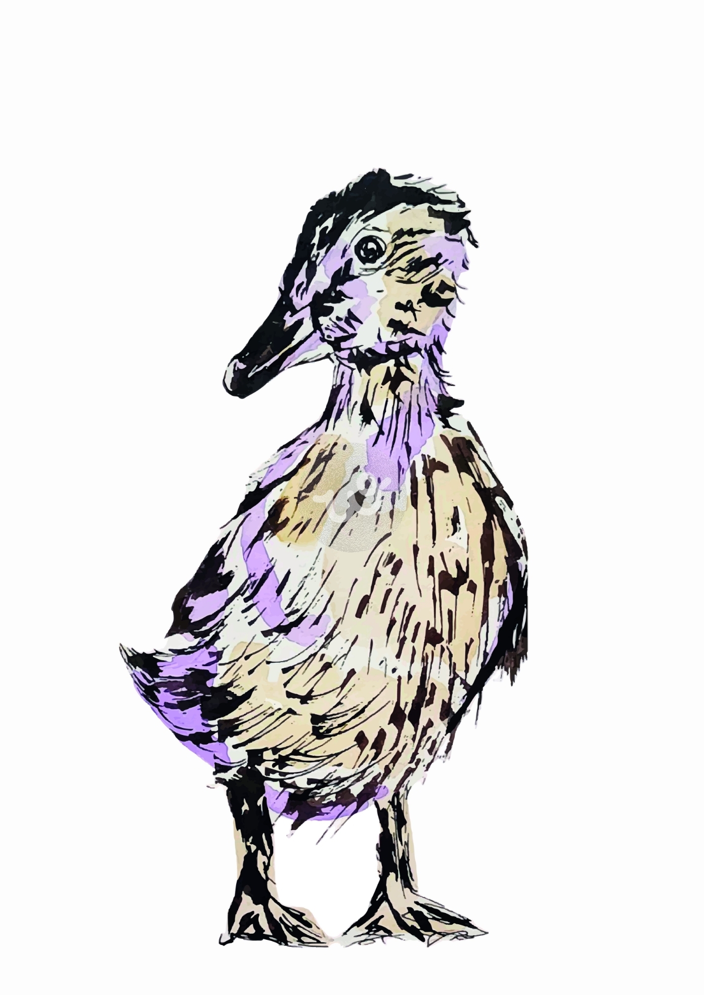بط طيور حبر سائل ألوان مائية فن تشكيلي فن معاصر بنفسجي أصفر أسود أبيض
