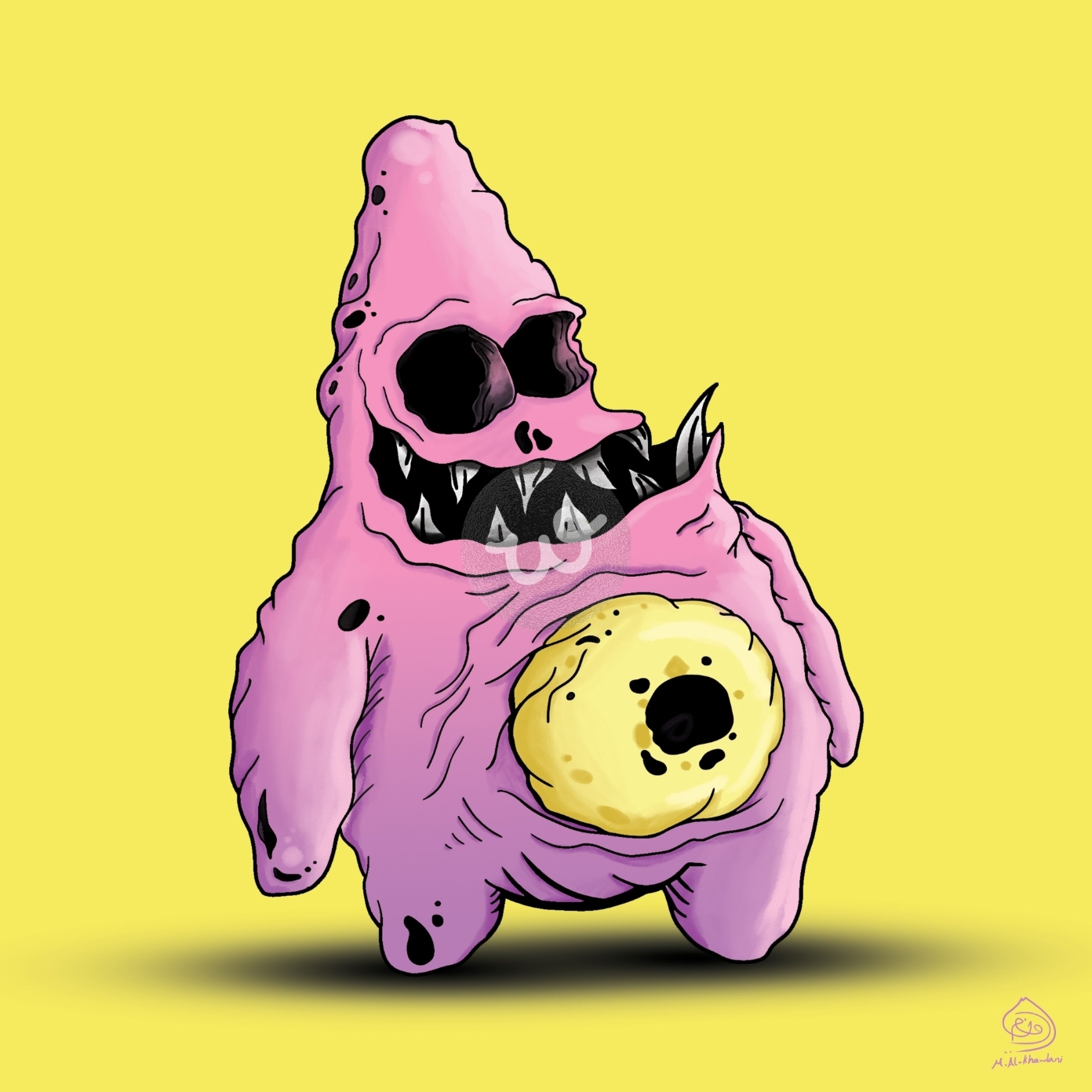شخصية بسيط من سبونج بوب بشكل وحش او طفيلي. تم رسم الرسمة في برنامج الفوتوشوب