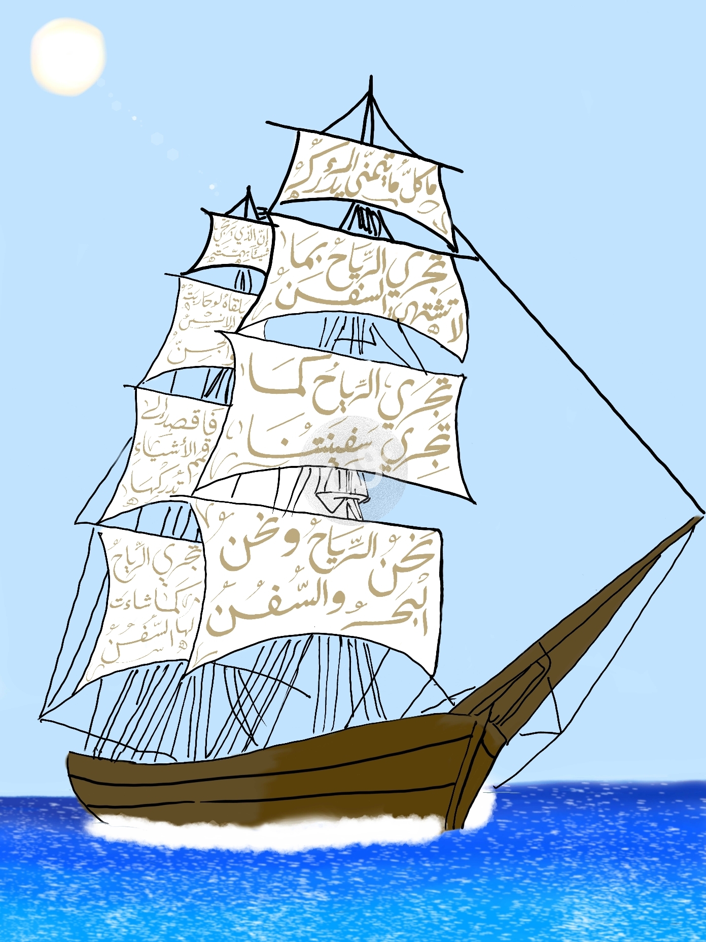 يَقول المُتنبّي: "ما كُلُّ ما يَتَمَنّى المَرءُ يُدرِكُهُ تَجري الرِياحُ بِما لا تَشتَهي السُفُنُ" ______ فَرَدَّ عليه أحدُ الشُّعراءِ فقال: " تجري الرياح كما تجري سفينتنا نحن الرّياح و نحن البحر و السفنُ إنّ الّذي يرتجي شيئاً بهمّتهِ يلقاهُ لو حاربَتْهُ الانسُ والجنُّ فاقصد إلى قمم الاشياءِ تدركها تجري الرياح كما رادت لها السّفنُ" الأبيات مكتوبة على الشرائع.