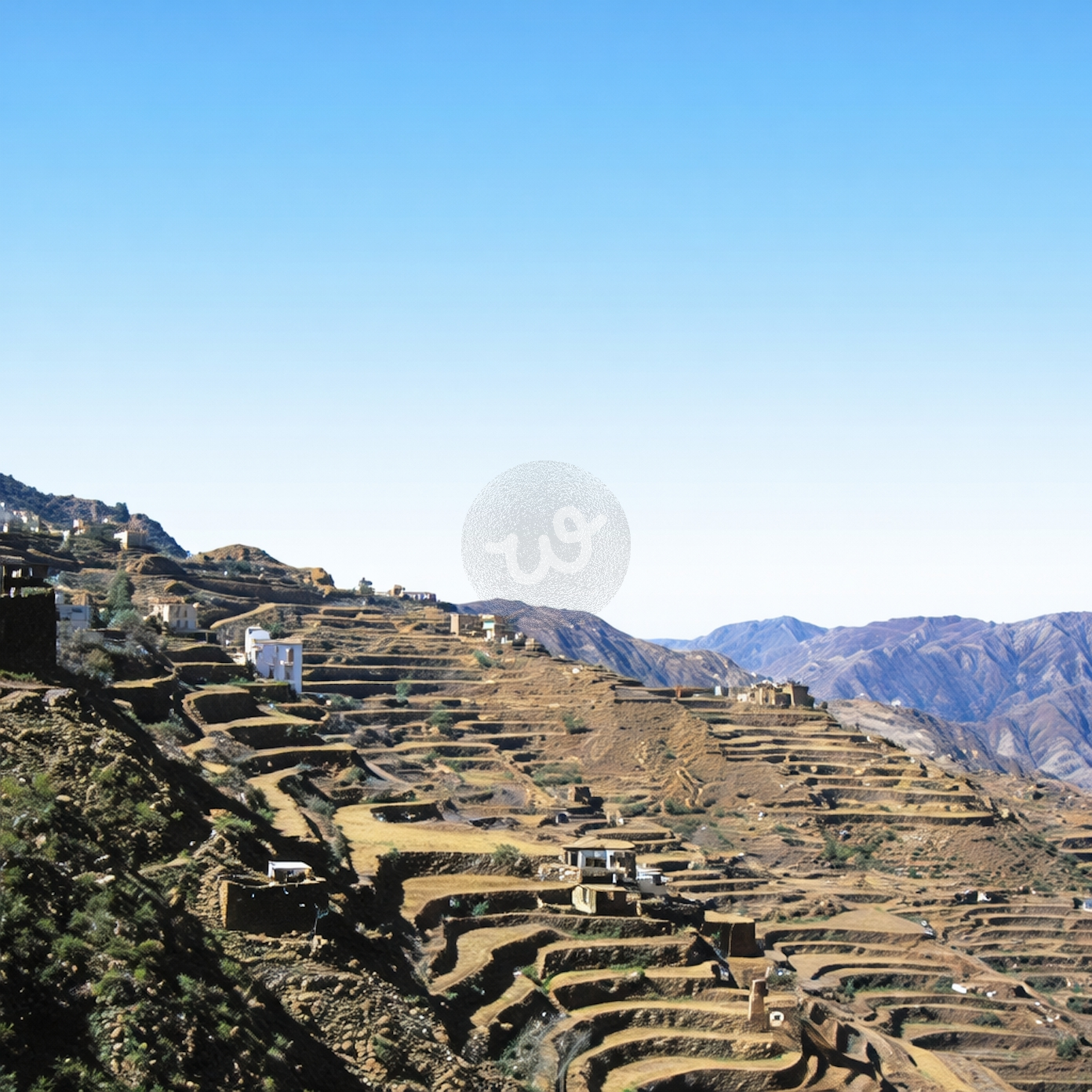 منظر طبيعي رائع لمدرجات زراعية ممتدة على سفوح الجبال، يجسد أسلوب الزراعة التقليدية في المناطق المرتفعة.