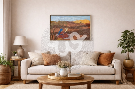 قطعة فنية تعبّر عن الصبر والأصالة، تحمل روح الصحراء وهدوءها، وتضفي حضورًا راقيًا ولمسة دافئة أينما وُضعت. المقاس: 60 × 40 سم الخامة: ألوان أكريليك على كانفس بدون ايطار