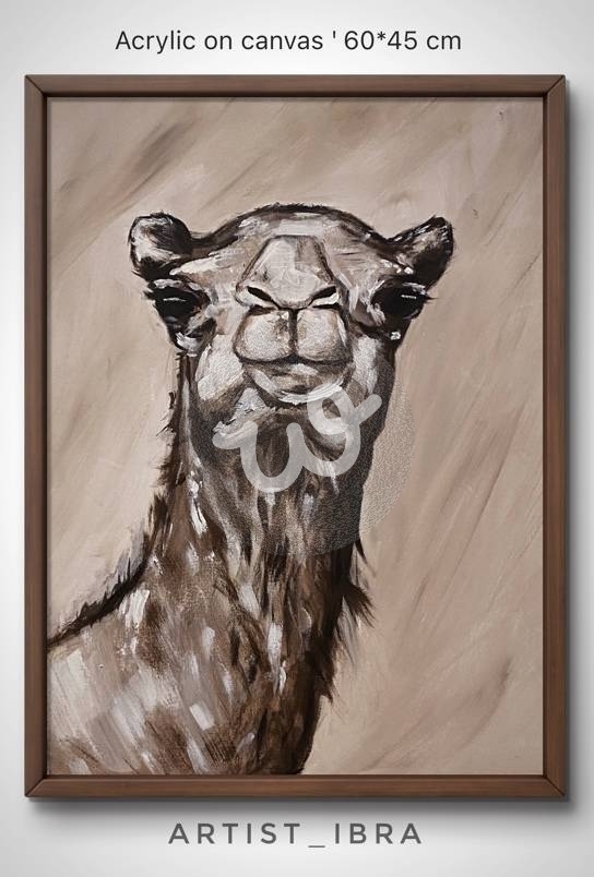 لوحة تعبر عن جمال تفاصيل الابل باسلوب تاثيري وبدرجات لون البني