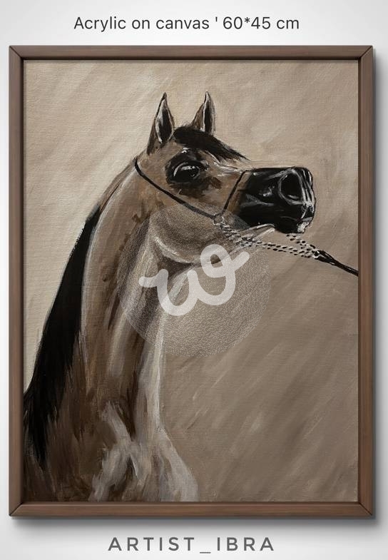 تعبير عن جمالية الخيل العربي باسلوب تاثيري مميز بدرجات لون البني
