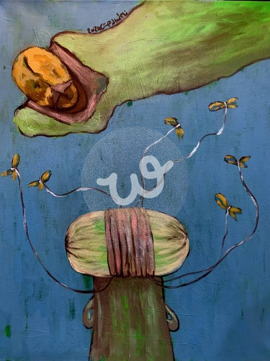 وانا صغيرة كنت استيقظ على صوت خيوط التلي بين يدي جدتي صوت هادئ يشبه نبض البيت كبرت وحملت معي تلك الاصوات واعادة حياكة الذكريات غرزة بعد غرزة فما صنعته جدتي لم يكن خيطا فقط بل عناية وحبا تعلمت منها ان الحياكة فعل روح وان البيوت لا تبنى بالجدران بل بالحب الذي يترك اثره في كل زاوية العمل اكريلك على كانفس