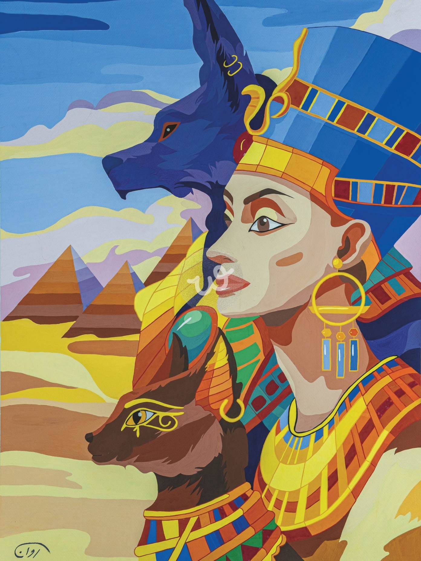 لوحة فنية وهي مزيج من ألوان وتدرجات مختلفة، وتعبر عن حضارة مصر العريقة