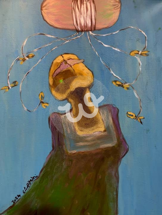 وانا صغيرة كنت استيقظ على صوت خيوط التلي بين يدي جدتي صوت هادئ يشبه نبض البيت كبرت وحملت معي تلك الاصوات واعادة حياكة الذكريات غرزة بعد غرزة فما صنعته جدتي لم يكن خيطا فقط بل عناية وحبا تعلمت منها ان الحياكة فعل روح وان البيوت لا تبنى بالجدران بل بالحب الذي يترك اثره في كل زاوية العمل اكريلك على كانفس