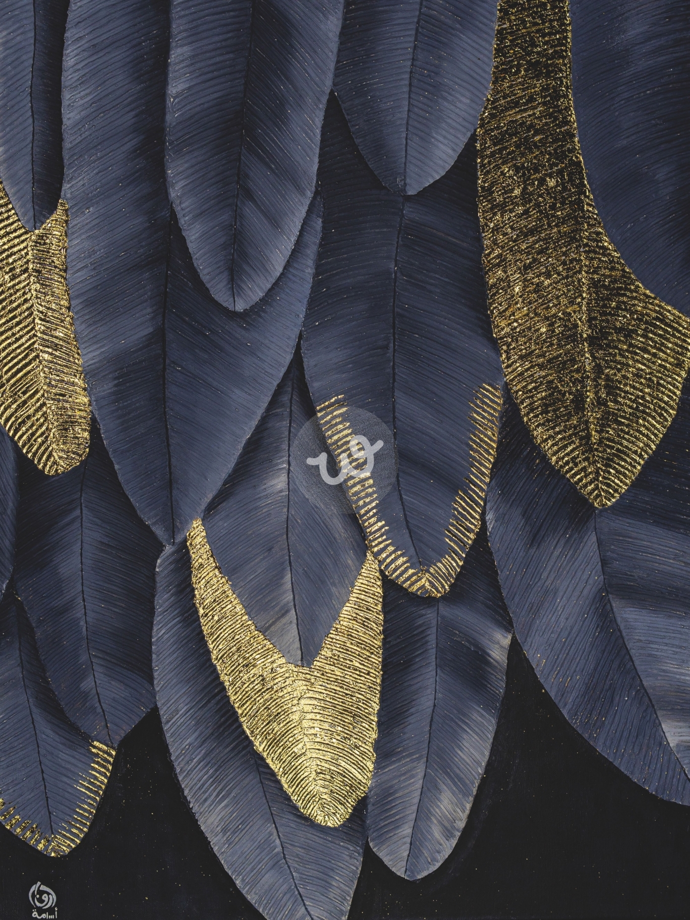 لوحة ديكورية مكونة من خليط من المعجون البارز واللون الذهبي والألوان الزيتية