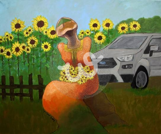 كنت اعبر بشكل شبه يومي على مزارع دوار الشمس التي سكنت قلبي وارتبطت بها كما ترتبط الروح بجذورها ومع جائحة كورونا وابتعادي عنها شعرت بفراغ صامت فوجدت نفسي امسك لوحة الكانفس وارسم شوقي واتخيل نفسي اجمع ازهار دوار الشمس واجلس اتأمل السماء وبجانبي سيارتي شاهدة على تلك اللحظات التي لا تنسى