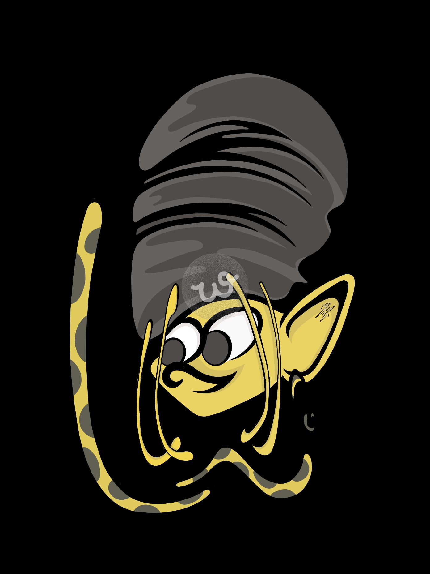 لوحة مركبة من خفاش يرتدي عمامة تحيط رأسه كغطاء القارورة، وخط متقطع يوحي بالمخاطر.