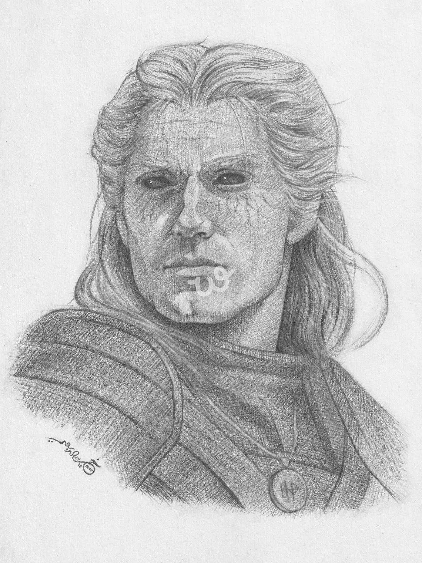 هذه الصورة عبارة عن رسم بالقلم الرصاص لمحارب قوي الملامح بشعر طويل منسدل وعيون داكنة ذات نظرة حادة. يتميز وجهه بتفاصيل دقيقة مثل الخطوط والتجاعيد الصغيرة التي تعطيه طابعًا واقعيًا وقويًا. يرتدي درعًا متينًا يوحي بالقوة والخبرة في القتال. الظلال والتدرجات في الرسم تعزز العمق وتضفي طابعًا دراميًا على الشخصية، مما يجعله يبدو وكأنه جزء من عالم خيالي مليء بالمغامرات.