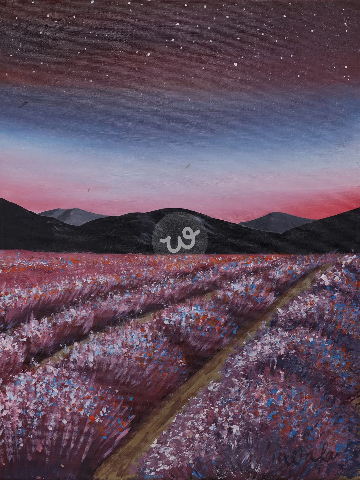 لوحة جمالية تعبيرية عن الطبيعية وحقول اللافندر البنفسجية
