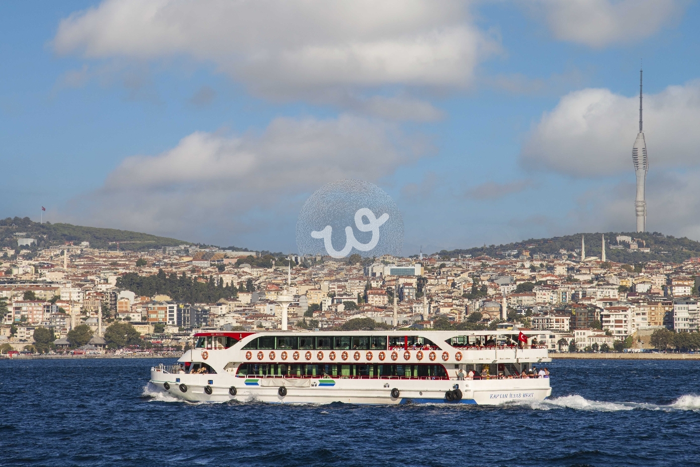 صورة فوتوغرافية تعكس لحظة هادئة تجمع بين حركة القارب وصفاء السماء، حيث يلتقي البحر بالمدينة في مشهد يوازن بين الحيوية والسكينة. عمل فني يضيف لمسة من الرحابة والتأمل لأي مساحة.