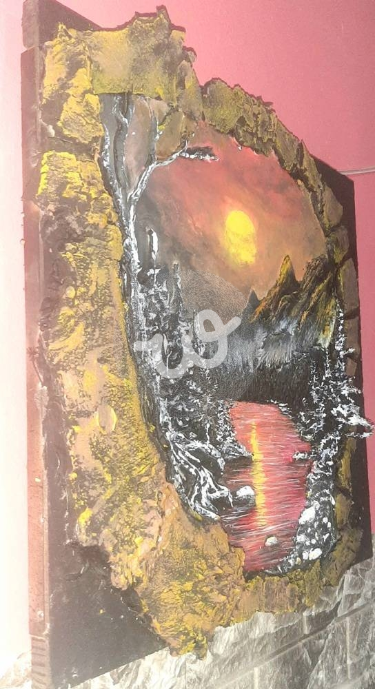 يجسّد العمل منظرًا طبيعيًا في لحظة غروب الشمس، حيث تنعكس ألوان السماء الدافئة على سطح المياه بهدوء. يعبّر هذا التلاقي بين الضوء والماء عن حالة من السكون والتأمل، ويستحضر إحساسًا بالسلام والانسجام مع الطبيعة.