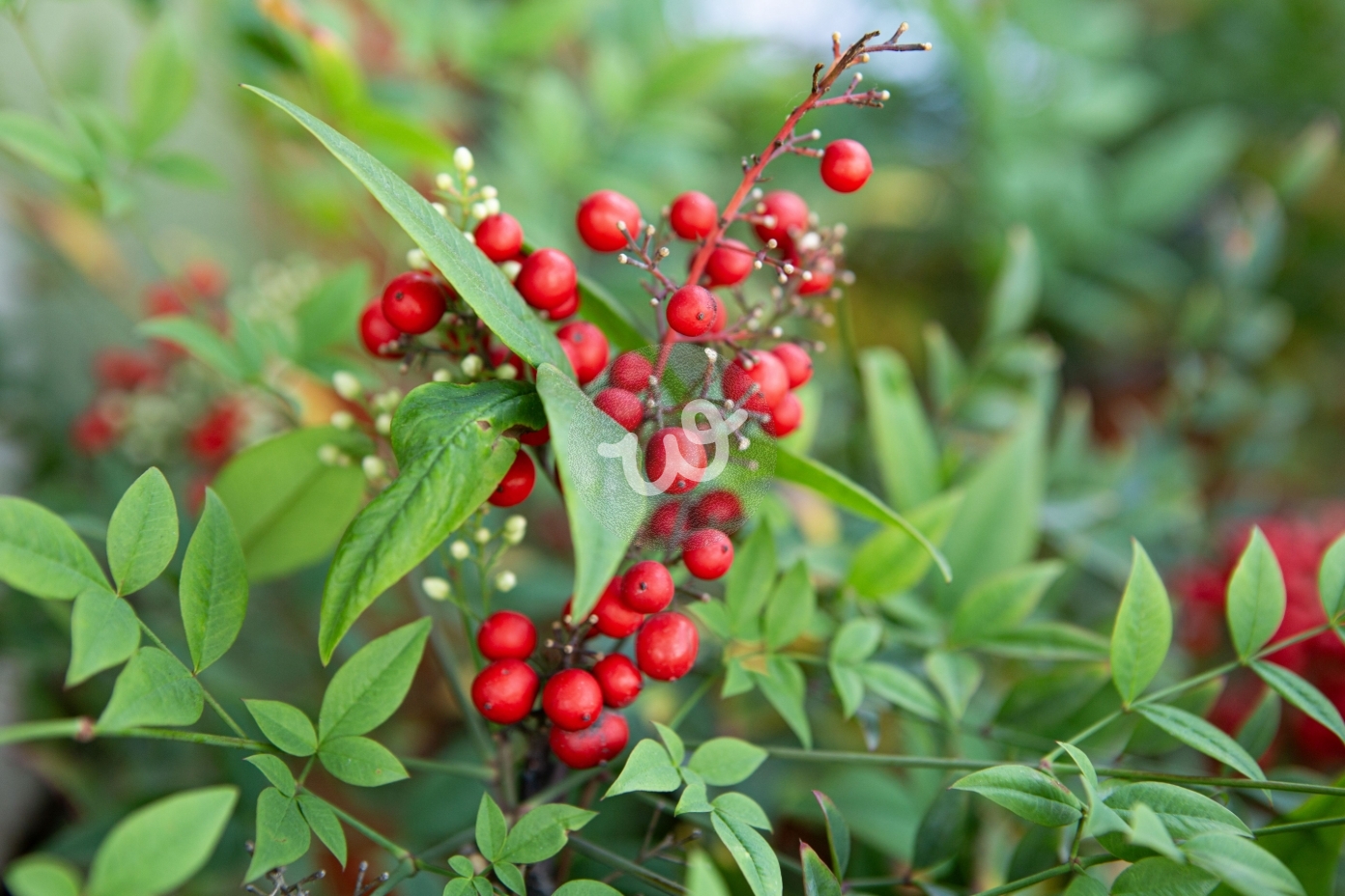 صورة فوتوغرافية لنبات الSacred bamboo تجمع بين جمال اللون الاخضر والاحمر معا
