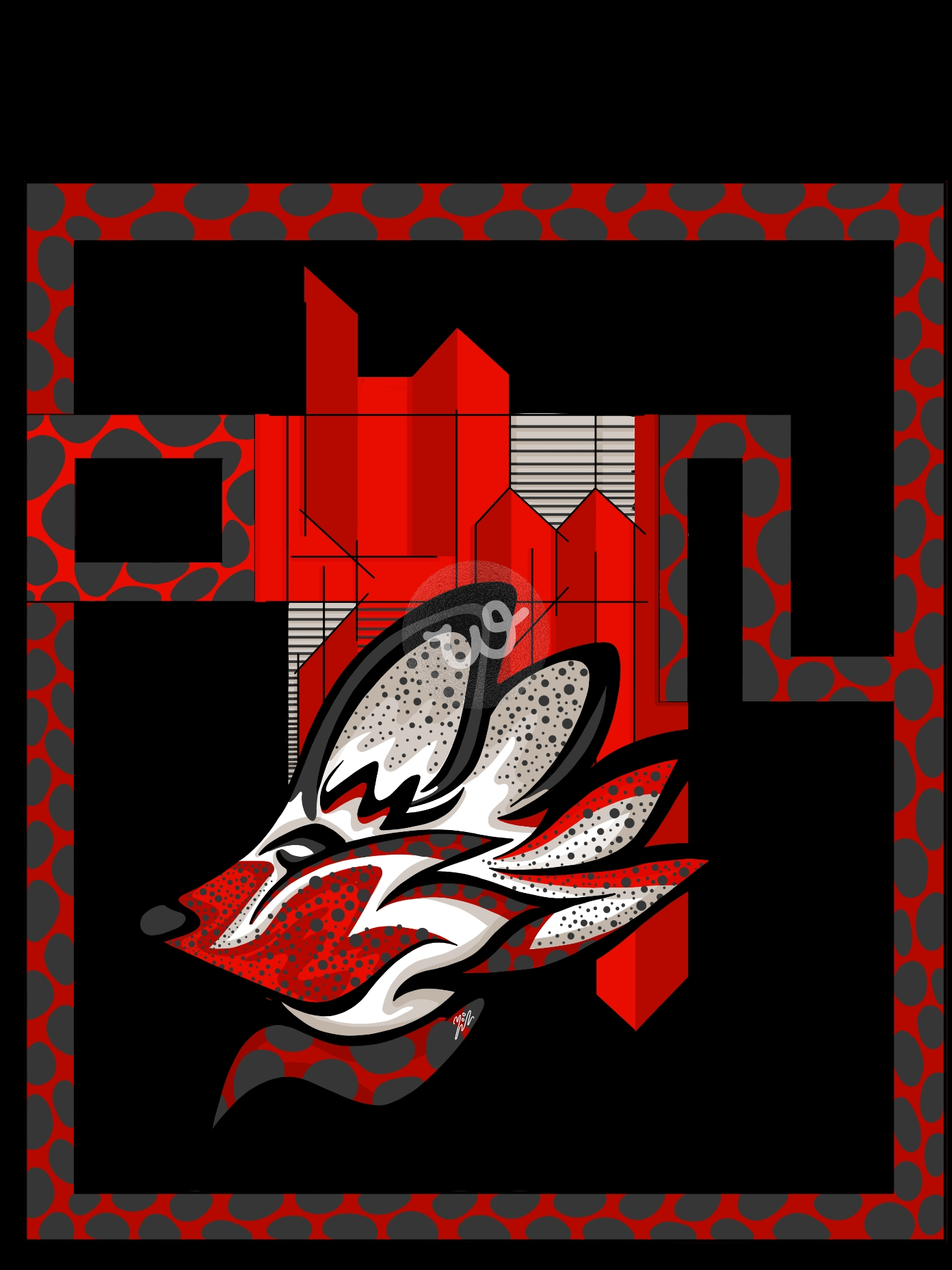 لوحة لثعلب يرتدي وشاح مرقط على عنقة، ومن ثم تحيطه تلك النقاط من جميع الاتجاهات. ورغم حصار النقاط ذلك المنتشر كالوباء على وجهه تجده حارسًا لخلية النحل المختبئة خلفه.