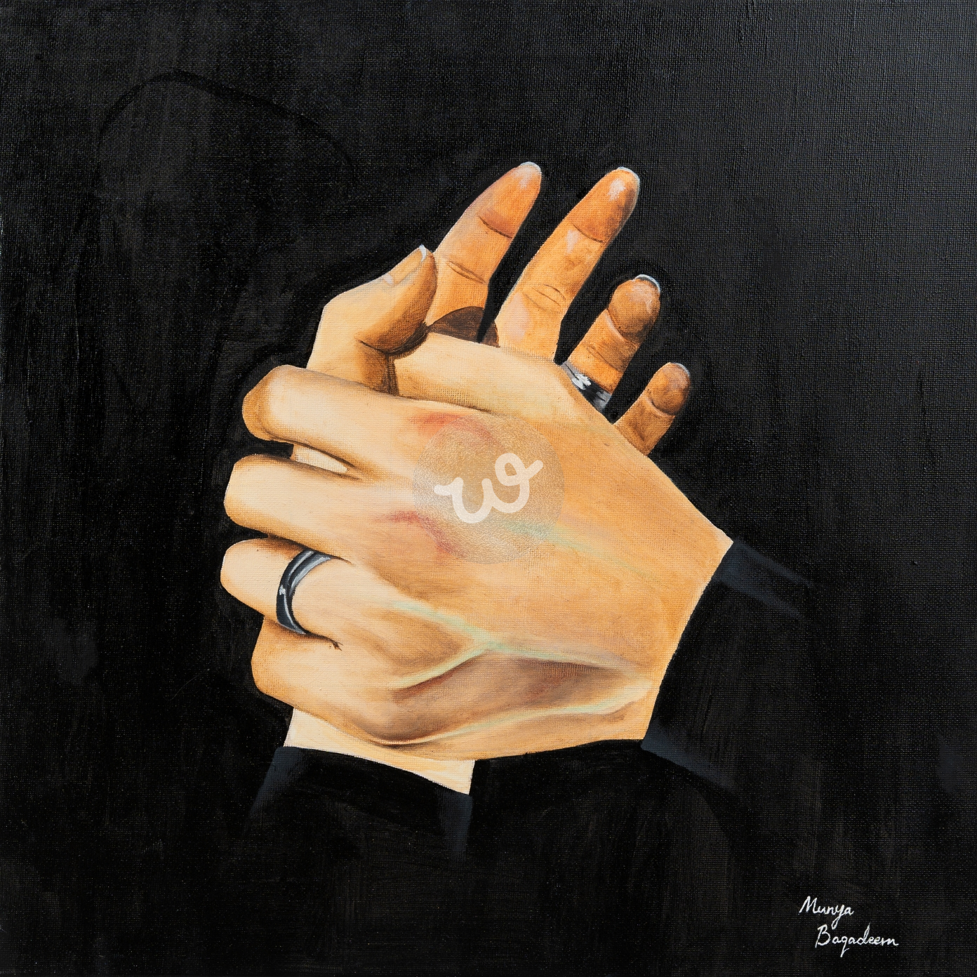 لوحه تظهر تشابك الكفوف والتشبث بالمحب مرسومه بألوان زيتيه