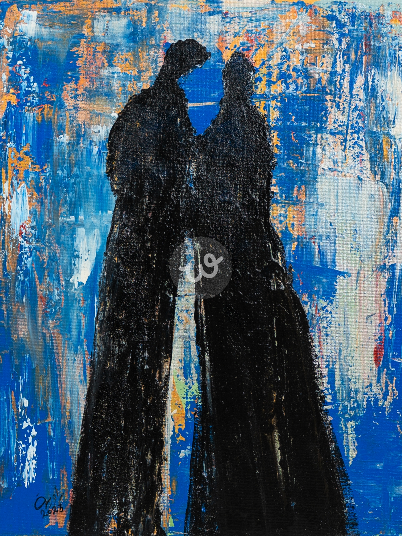 هذه اللوحة تجسد مشهد لاحظته بعد شروق الشمس لظل لأخوين بالشارع كان المشهد يوحي بالانسجام وكيف أنه الظلال هي انعكاس لنا ولمشاعرنا ايضا. هذه الرسمة رسمتها بألوان أكريليك على كانفاس