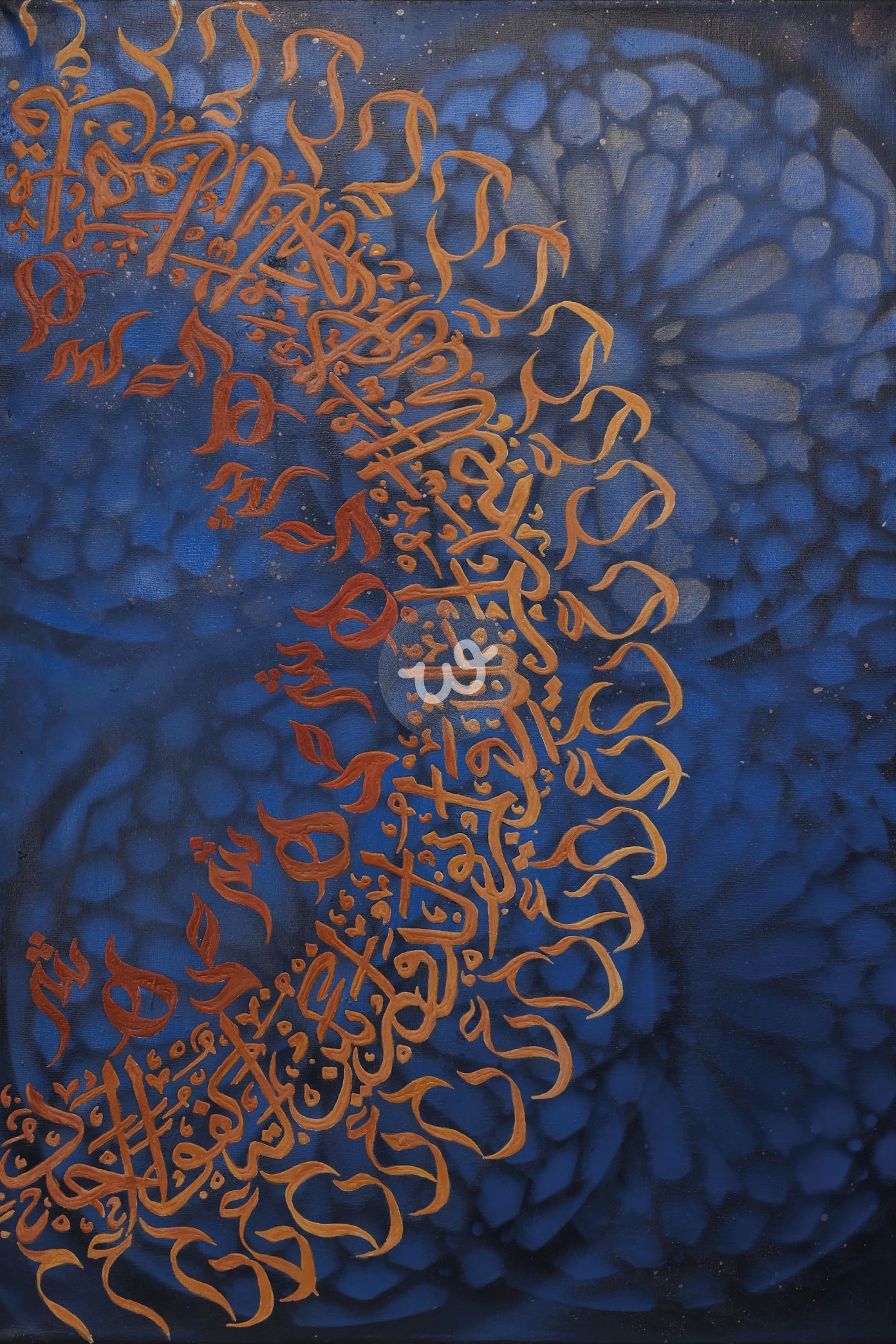 "لوحة خطية رائعة تظهر جمال الكلمات في خطوط أنيقة ومتناسقة. الخطوط الدقيقة والمتدفقة تعكس جمال اللغة العربية في شكله الفني. اللوحة بأكملها تعكس شعورًا بالجمال والأناقة، وتظهر جمال الخط العربي والزخرفة في تفاصيله الدقيقة. إنها لوحة فنية رائعة تعكس جمال اللغة العربية في شكله الفني."