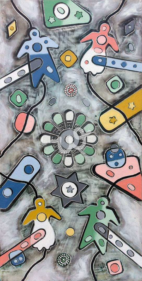 With this collection, Andrea Benetti aims to highlight how abstract painting, at least in its embryonic form, traces its roots back to the very origins of our history, going as far as prehistoric cave paintings. In these primitive works, the use of symbols and chromatic forms already emerged, anticipating the fundamental principles of abstractionism, while maintaining a mysterious and primitive character.