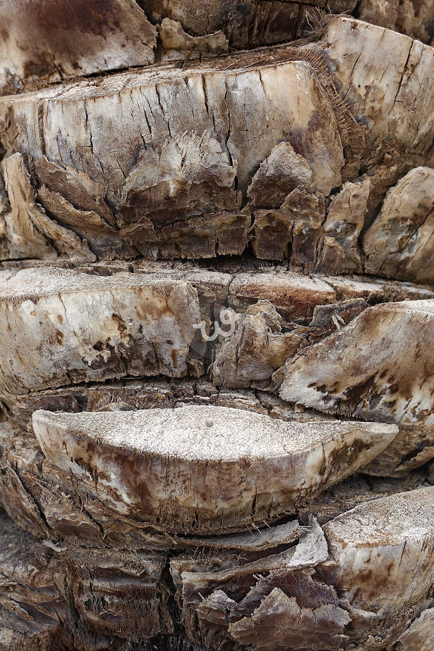 تفاصيل جذع النخلة بملمسها الخشن وتشققاتها الطبيعية