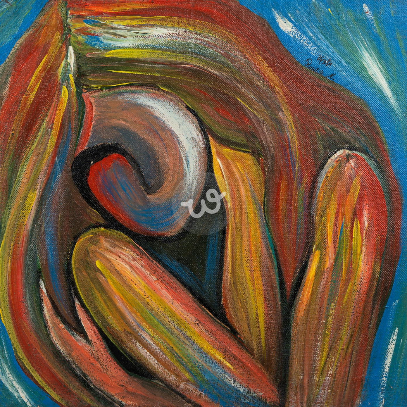 هذه اللوحة مرسومة بالوان اكريليك على قماش. تجسد هذه اللوحة شعور احتواء الذات الذي يحتاجه الانسان.رسمت فتاة من غير ملامح بشكل تجريدي تبرز في اللوحة المشاعر اكثر من التفاصيل الخاصة بالمرأة. هذه الوضعية التي تسمى عناق الفراشة هي طريقة مبتكرة من علماء النفس لتهدئة المرء اثناء مروره بصدمة او بمشاعر منخفضة، هي وسيلة لإخبار جسدك المادي أنك ستكون بخير.