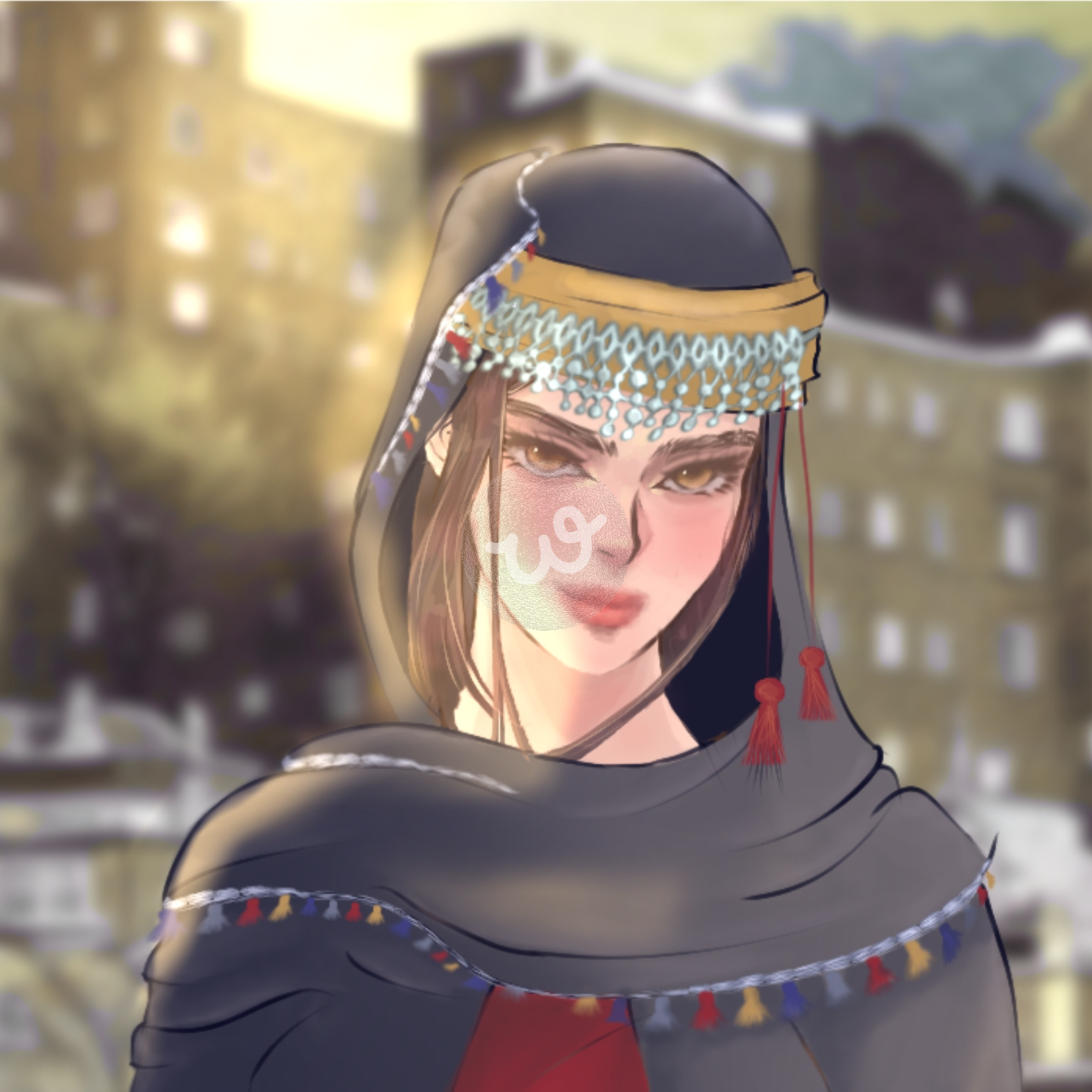 A digital painting showcasing the rich cultural heritage of southern Saudi Arabia. The traditional attire, adorned with intricate beadwork and vibrant tassels, reflects the elegance and strength of the region’s identity.