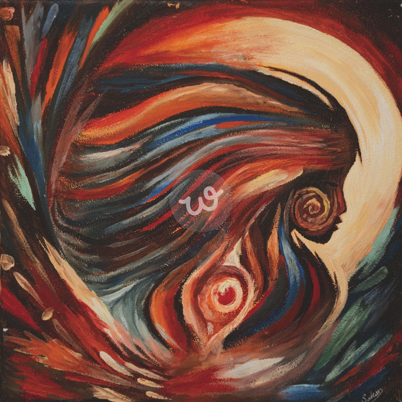 لَوْحَةٌ تَجْرِيدِيَّةٌ تُعْبِرُ عَنْ فُورَانِ الْمَشَاعِرِ وَتَنَاقُضَاتِ الْحَيَاةِ الَّتِي يَخْتَبِرُهَا الْقَلْبُ الْإِنْسَانِيُّ.
