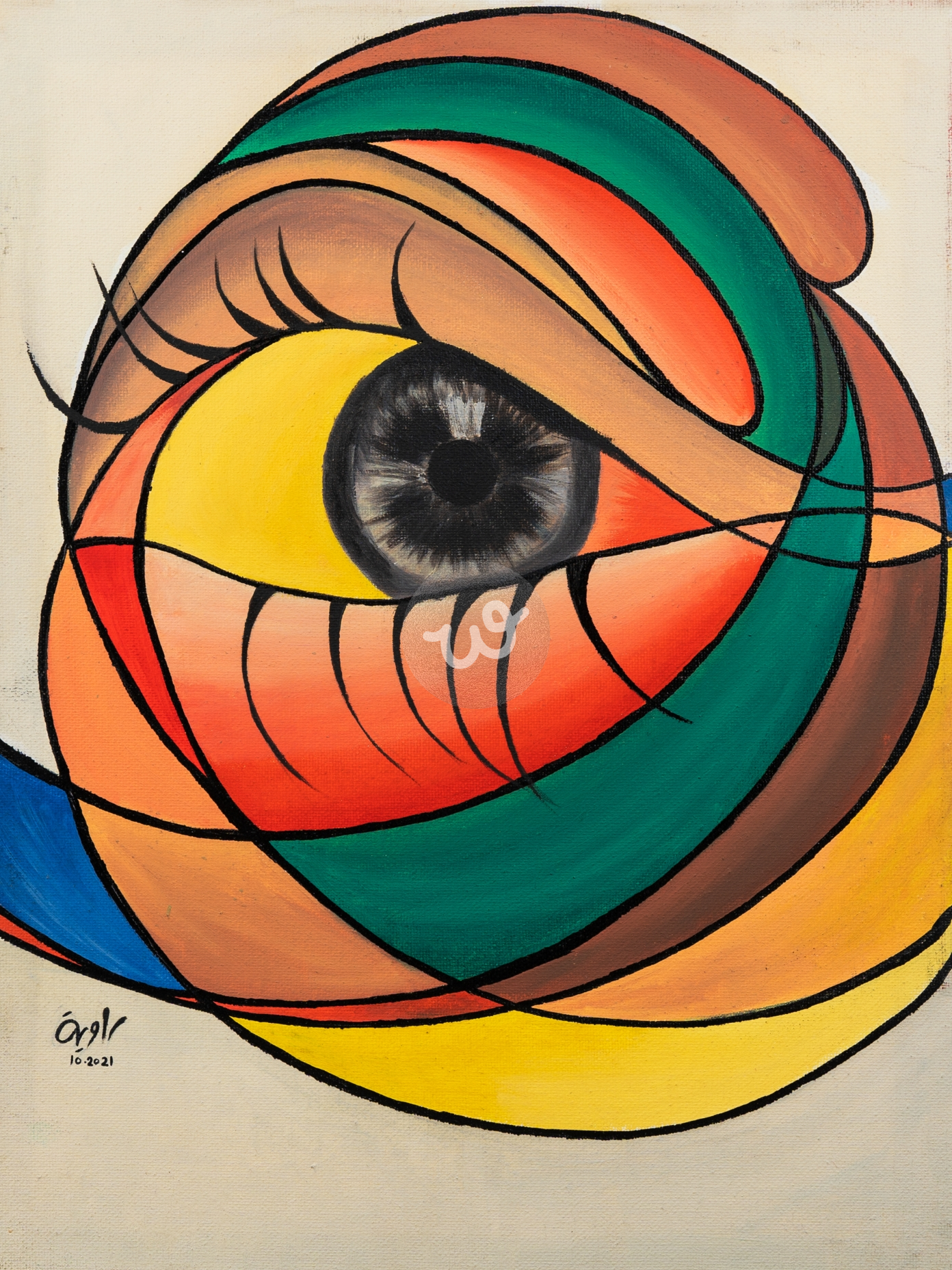 هذه اللوحة مرسومة بألوان زينية على قماش كانفاس، في هذه اللوحة ابرزت في العين نظرة حنين ، استخدمت عدة الوان حول العين بشكل تجريدي والعين رسمتها بشكل واقعي ، الفكرة في هذه السلسلة هي التعبير عن المشاعر التي تجتاح الانسان وتبرز في عينه.