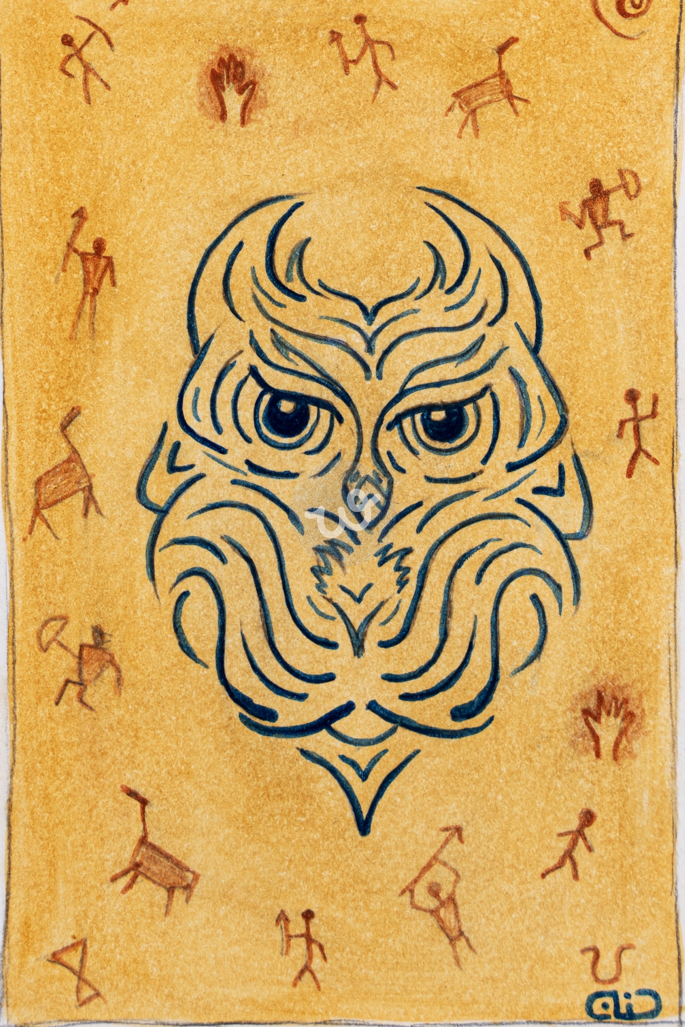 اللوحة تروي قصة عتيقة حيث يتسلل الزمن عبر النقوش البسيطة التي تحيط ببومة، تبدو وكأنها حارسة للحكمة القديمة.. رسمت بالوان زيتية