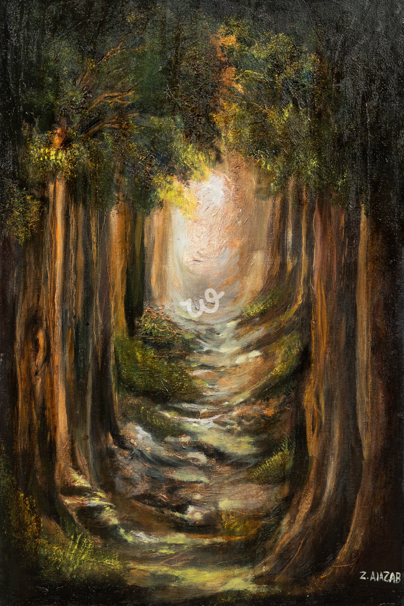 اللوحة تعبر عن رحلة من الضياع إلى الأمل، حيث ترمز الغابة المموهة الملامح إلى الغموض أو التعقيدات التي نواجهها في الحياة. الضوء الساطع في وسطها يمثل الأمل أو الحل الذي يبرز بقوة رغم الظلام المحيط. اللوحة تدعو للتأمل في قوة الإيمان والبحث عن النور حتى في أحلك اللحظات