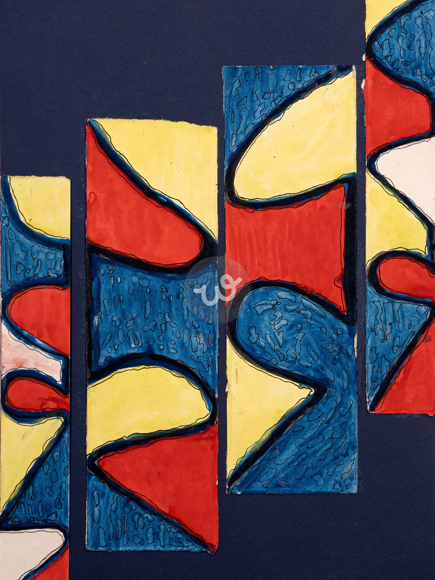 لوحة مستوحاة من الأسلوب الهندسي الحديث، تعبّر عن التوازن البصري من خلال المزج بين الألوان الجريئة والأشكال المنحنية. تتسم بحيوية ديناميكية وتجذب الأنظار بتباين ألوانها العميق والتفاعل المميز بين الأشكال.