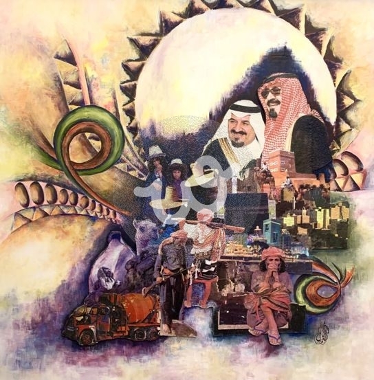 استلهمت هذا العمل من النهضة والإنجازات التي شهدتها المملكة في عهد الملك عبدالله بن عبدالعزيز وولي عهده، معبّرًا برؤية فنية عن التحول والتطور. دمجت فيه العناصر المعمارية الشعبية والرموز الحديثة، لتجسيد طموح الوطن نحو المستقبل. استخدمت ألوان الأكريليك والوسائط المتعددة لربط الماضي بالحاضر، وسرد قصة بناء وازدهار تعبّر عن الفخر والهوية وروح الابتكار