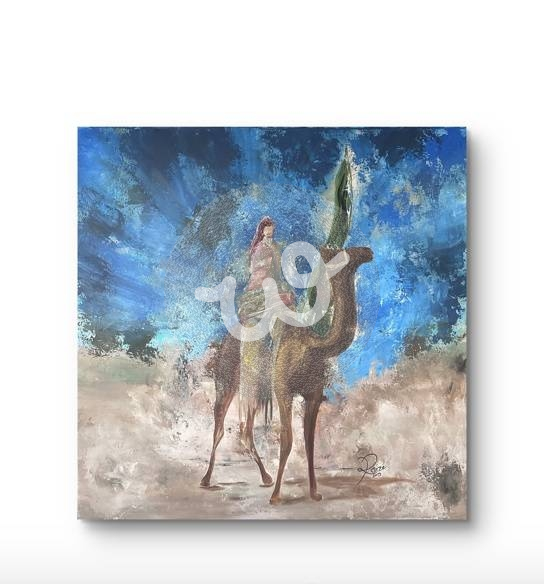 يجسّد العمل ارتباط الإنسان بأرضه وهويته من خلال صورة رجل يجلس بثبات على ظهر الجمل، ممسكًا بالعلم السعودي في مشهد يعبّر عن الأصالة والعزّة. يرمز الجمل إلى الصبر والقوة والتحمّل، بوصفه جزءًا راسخًا من تاريخ الصحراء وثقافتها، بينما يمثّل العلم الانتماء والوحدة والاعتزاز الوطني. وضعية الجلوس الهادئة تعكس الثقة والرسوخ، لا استعراض القوة بل تجسيدها بهدوء. يجمع العمل بين الإنسان، الأرض، والرمز الوطني في صورة واحدة، ليعبّر عن استمرارية الجذور رغم تغيّر الزمن، وعن هوية تبقى ثابتة مهما تبدّلت الظروف.