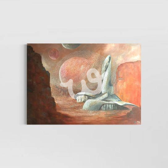 يظهر المبنى المستلهم من مركز إثراء كأثر معماري وحيد على كوكب غير معروف، يطفو بهدوء بين الأفق والخيال. في هذا المشهد البعيد، تتجاور الطبيعة والكائنات مع حضور إنساني صامت، وكأن المعرفة وجدت موطئ قدم لها خارج حدود الأرض. العمل تأمل في انتقال الثقافة، وفي قدرة العمارة على حمل الذاكرة حتى في المجهول.