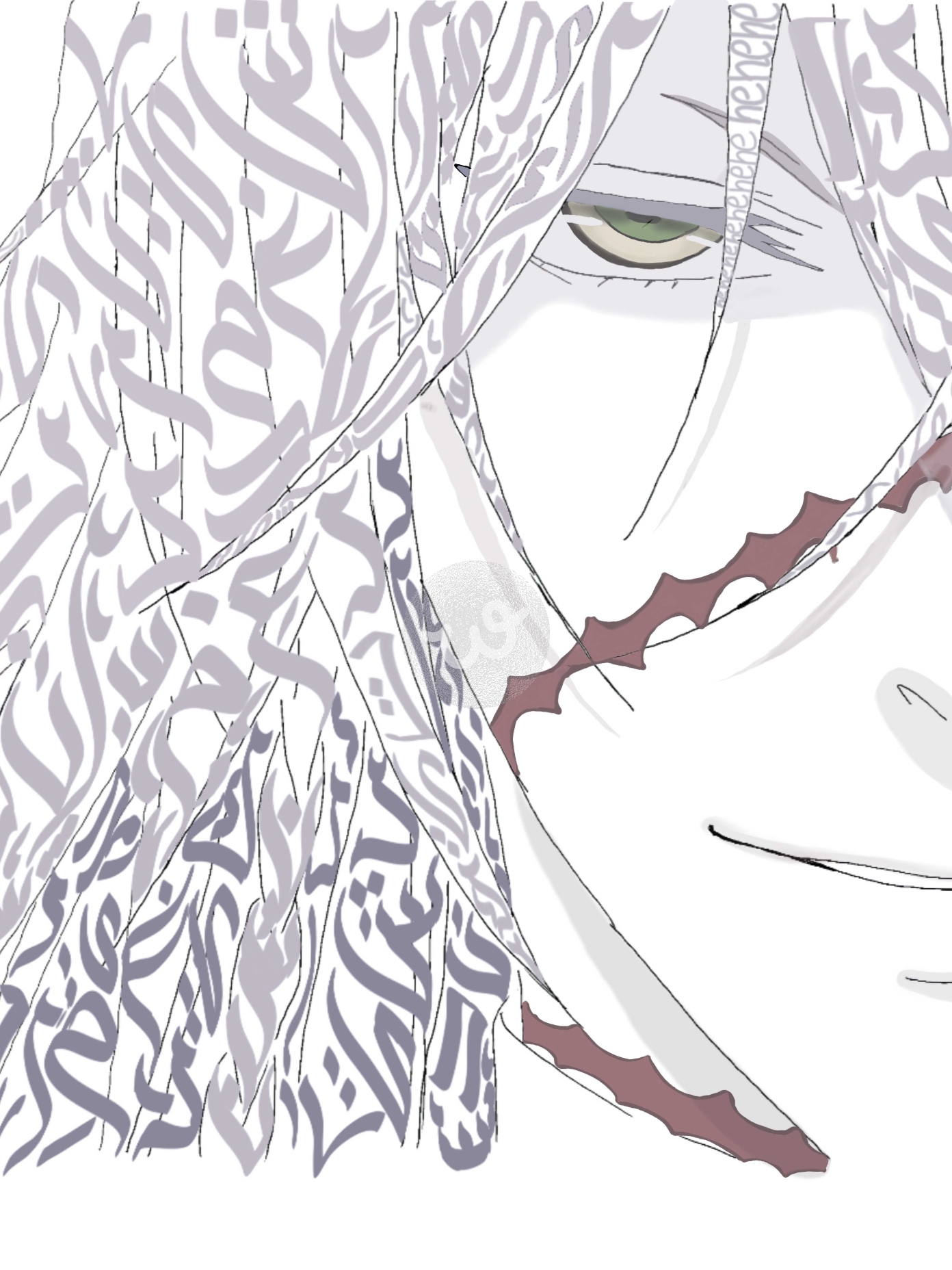 رسم سيباستيان وأندرتيكر -بطلي الخادم الأسود- بالخط العربي، مكتوب عليها أحرف أسمائهم وأشهر عباراتهم.